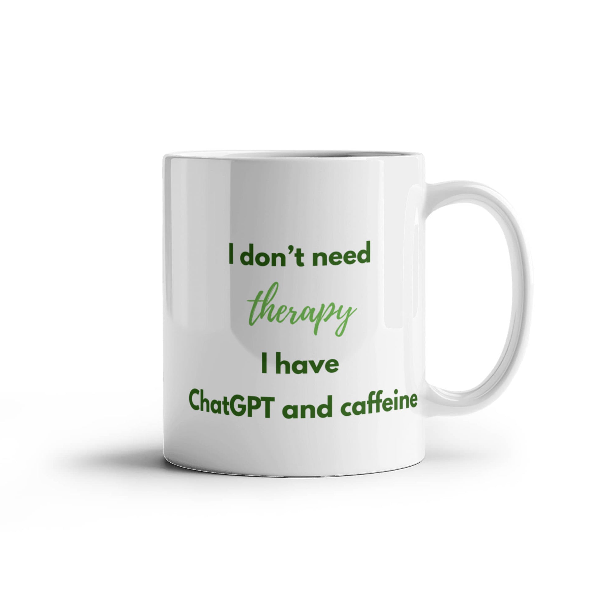 I Don't Need Therapy, I Have ChatGPT and Caffeine Coffee Mug (Forest Green)